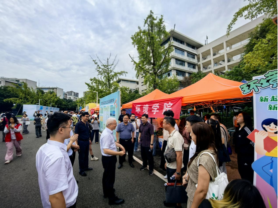 迎新报到期间,四川农业大学校长吴德等学校领导也亲临环境学院迎新点位,与新生及家长亲切交流。吴德校长细致询问同学们的报到情况,并向新生们表达了真挚的祝福。院长沈飞在学院迎新现场与新生亲切合影,并结合学院发展实际,向在场家长系统介绍学院办学特色与人才培养体系。院党委书记黄成毅则聚焦家长关切的新生学习及生活问题,与家长展开细致沟通,向新生传递学校的关怀与问候,并对现场迎新工作人员提出要求,强调需以更饱满的热情投入迎新工作,积极主动解决新生遇到的各类问题,切实彰显川农大精神。