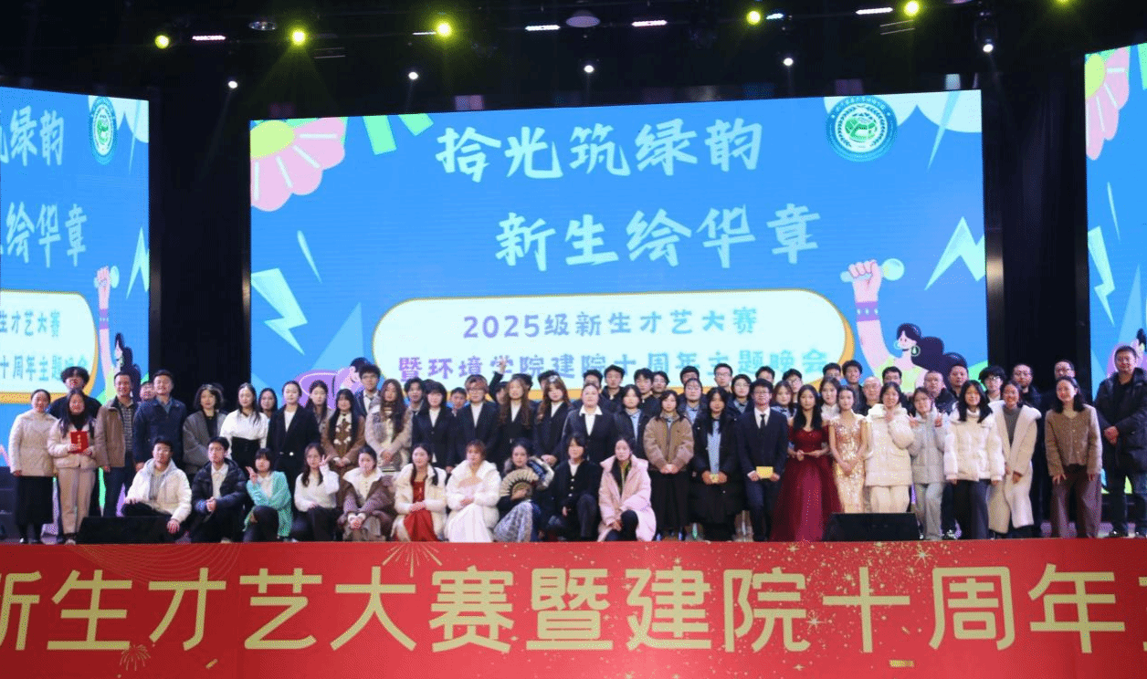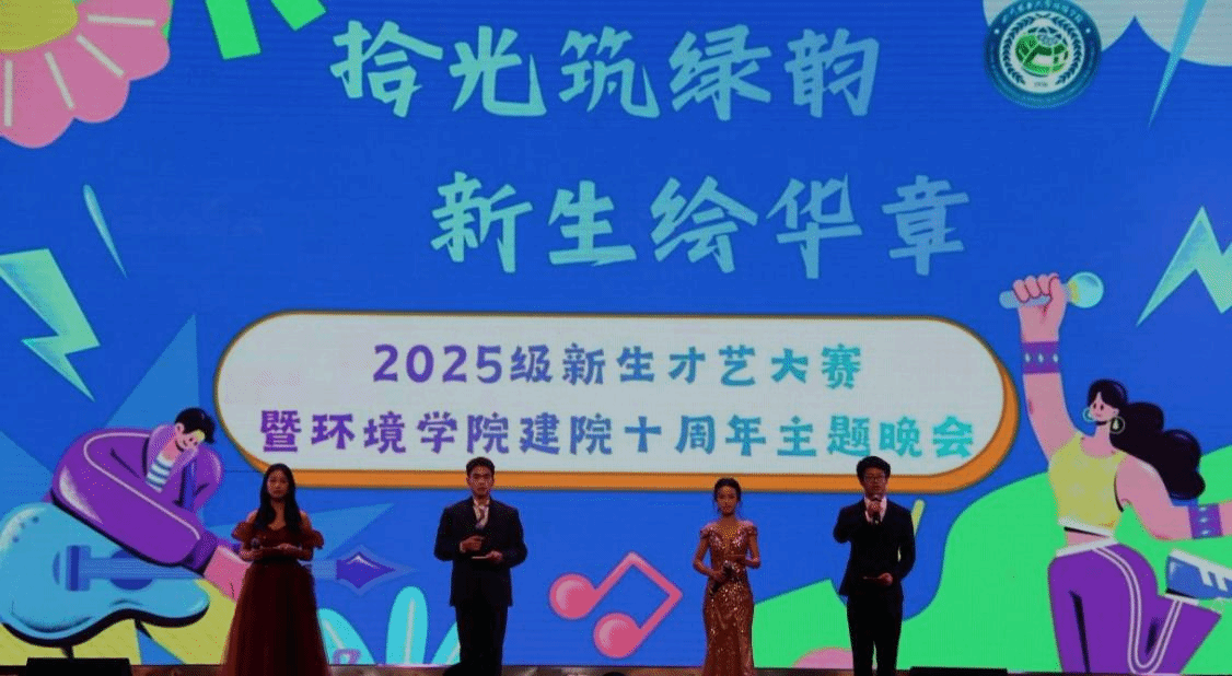 本次晚会旨在丰富2025级新生的大学生活,为他们提供一个展示自我风采的舞台与契机。晚会以“拾光筑绿韵,新声绘华章”为鲜明主题,深情回顾环境学院十年来的办学成就与环保育人的初心。这不仅传承了“守护绿水青山”的学科精神,更激发新生对专业的认同感与归属感,凝聚全院师生的力量,携手共赴下一个十年的生态使命。