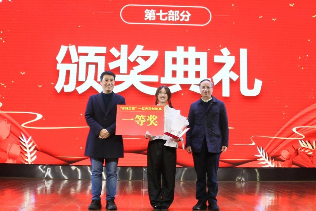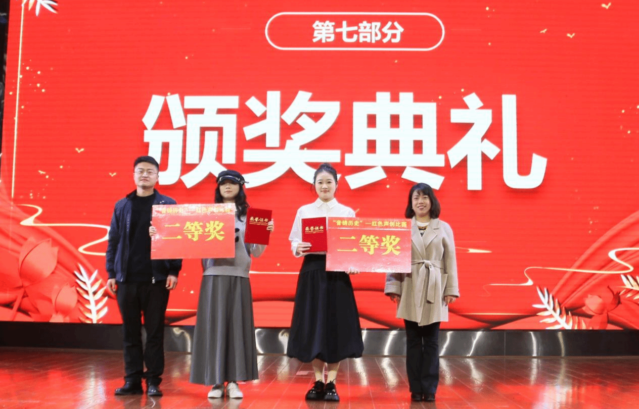 从《五四惊雷・赤潮起》中青年学子的热血赤诚,到《红军渡》里长征先辈的坚毅执着,从《炬火传心》中民国母女的家国羁绊,到《红铁》中熔铸民族风骨的精神坚守,再到《第十一封家书》里左权将军的柔情与担当……每一段演绎都饱含敬意,或用配音复刻经典,或用朗诵传递力量,生动重现了反法西斯岁月中的信仰之光与精神力量,赢得了现场师生的阵阵掌声。最终,“薇光队”凭借精湛的舞台表演脱颖而出,以亮眼表现斩获一等奖;“红铁打铁队”与“赤川毓英队”荣获二等奖;“声承英志队”“川农薪火传声队”与“声生不息队”获得三等奖。