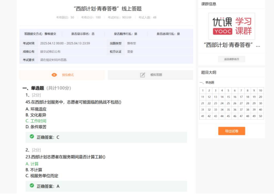 “西部计划”是国家为促进西部地区经济社会发展、培养青年人才而实施的重要战略。自实施以来,大批优秀青年奔赴西部,扎根基层,为当地发展贡献青春力量。活动以“西部计划”国家战略为主题,设置了50道题目,题目内容涵盖西部计划政策、地理环境、资源优势、文化特色等多个方面,旨在帮助同学们认识西部在国家发展战略中的重要性。参与同学需在限定时间内完成答题。答题期间,同学们认真作答,展现了极高的参与热情与学习态度,所有参与答题的同学皆达到优异的成绩。充分展现了环境学院学子扎实的知识储备和对西部发展的深刻理解。本次活动不仅反映了大家对西部发展的关注与支持,更是让许多同学对西部计划有了更深刻的认识。同学们的学习热情和服务西部的决心也在活动中得到体现。