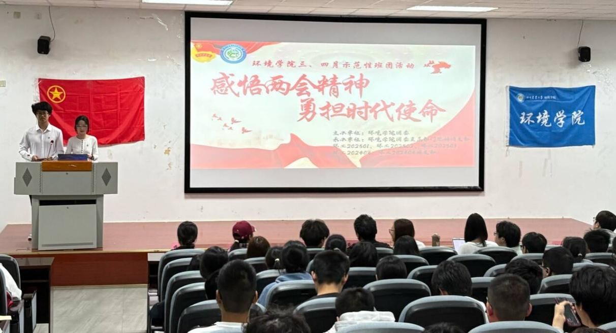 为深入学习贯彻习近平总书记关于树立和践行正确政绩观的重要论述精神,引导广大团员青年准确把握中央一号文件精神实质,4月7日,环境学院团委直属部门流动团支部联合环工202403、环工202404、环工202501、环工202502、环工202503班团支部,在4教A102教室共同组织开展以“感悟两会精神,勇担时代使命”为主题的四月示范性班团活动,学院党委办副主任、团委副书记黄杵睿受邀出席。