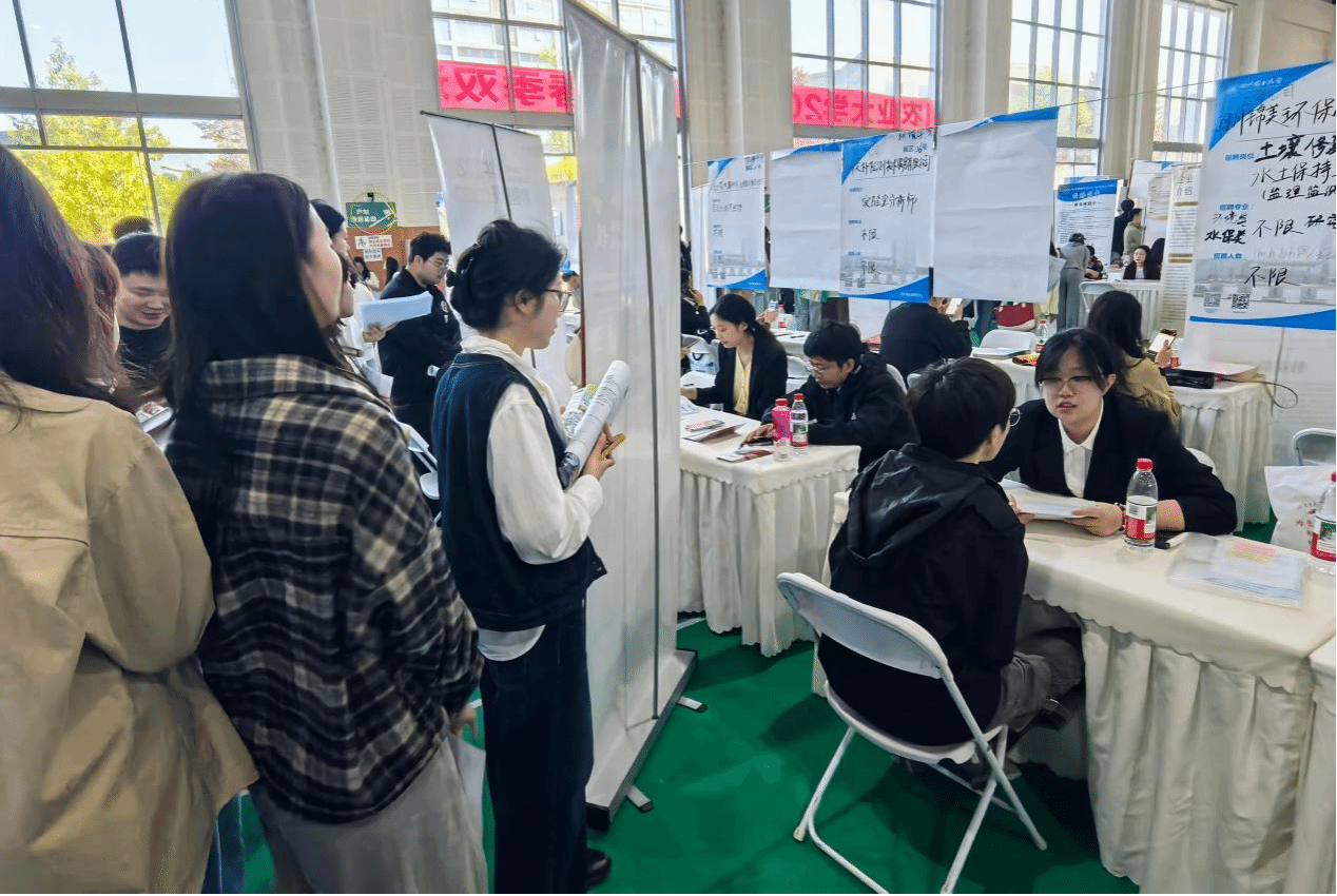 双选会现场气氛热烈而秩序井然。志愿者们提前抵达岗位,完成展位布置、引导标识张贴、资料整理等筹备工作,以饱满的热情为参会人员提供服务。各参会企业通过展板展示、宣传手册发放等形式,全面呈现企业发展前景、核心业务领域及招聘岗位详情,涵盖环境工程、环境科学、水土保持、环保技术研发等多个方向。毕业生们手持精心打磨的简历,穿梭于各个展位之间,主动与用人单位招聘负责人深入交流,围绕岗位任职要求、薪酬福利体系、职业晋升路径、培训发展机会等核心问题积极咨询。用人单位代表耐心细致地解答同学们的疑问,通过现场沟通、简历筛查、初步面谈等方式精准筛选人才,部分企业还特别设置了现场面试环节,与意向毕业生展开深度洽谈,不少同学在现场达成初步就业意向。