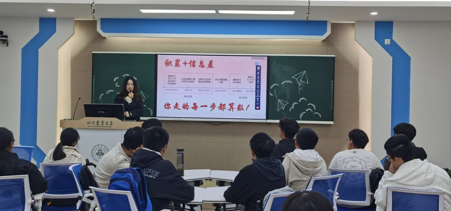 班会紧扣主题,以“精准拆解路径+实操技巧赋能+个性化交流互动”为核心脉络,提炼大学生涯规划的精髓。会上,学院2023届推免学子朱思漫向现场向大家详细介绍了自己在大学期间的学习生活,在参加推免、支教以及读研过程中的学业规划,通过个人切身体会,向大家分享了考研、就业的基本技巧及方法。她倡导大家在大学学习期间“自律打底+时间精力管理”,鼓励通过社团、实验室项目打磨沟通与专业软件技能,考取针对性证书;传递“支教一年,自教一生”的志愿精神,引导大家在大学包容环境中勇敢试错、跨界学习,践行“知行合一”。同时,学院2023届毕业生,成功考研至重庆大学、中国海洋大学和同济大学的学长们,通过实时线上连线,为大家带来了精准、务实的大学生涯规划及考研宝典。